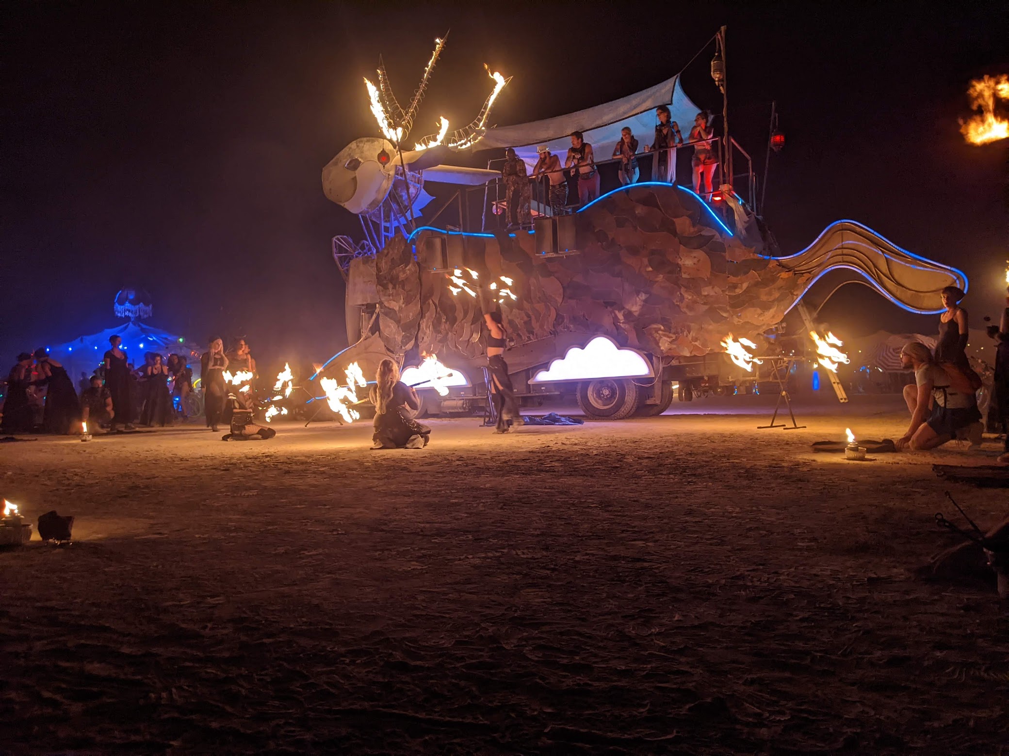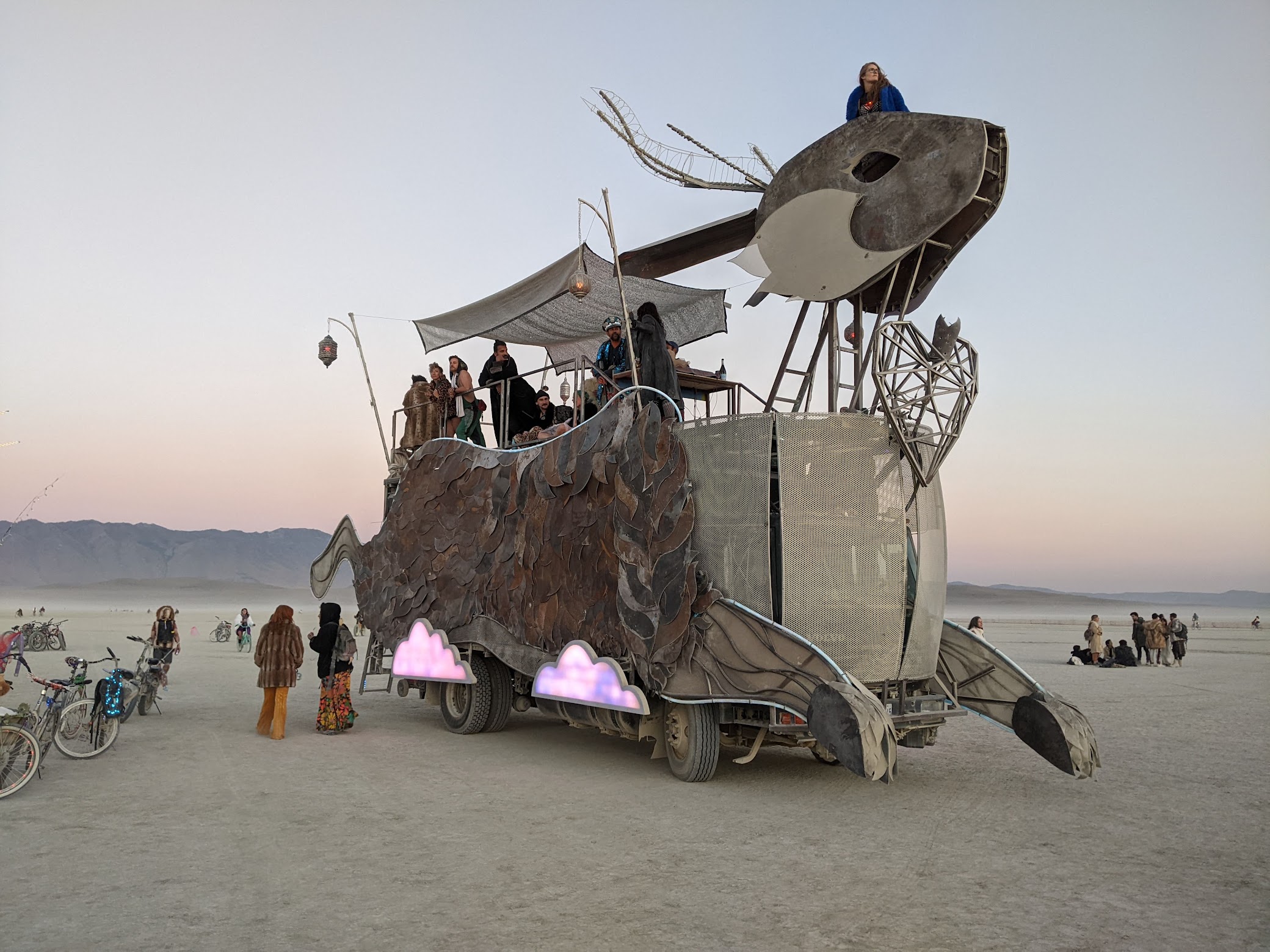 Tarna is a jackalope made of friendship, metal, propane, LEDs, and an ol’ Volvo FE truck.